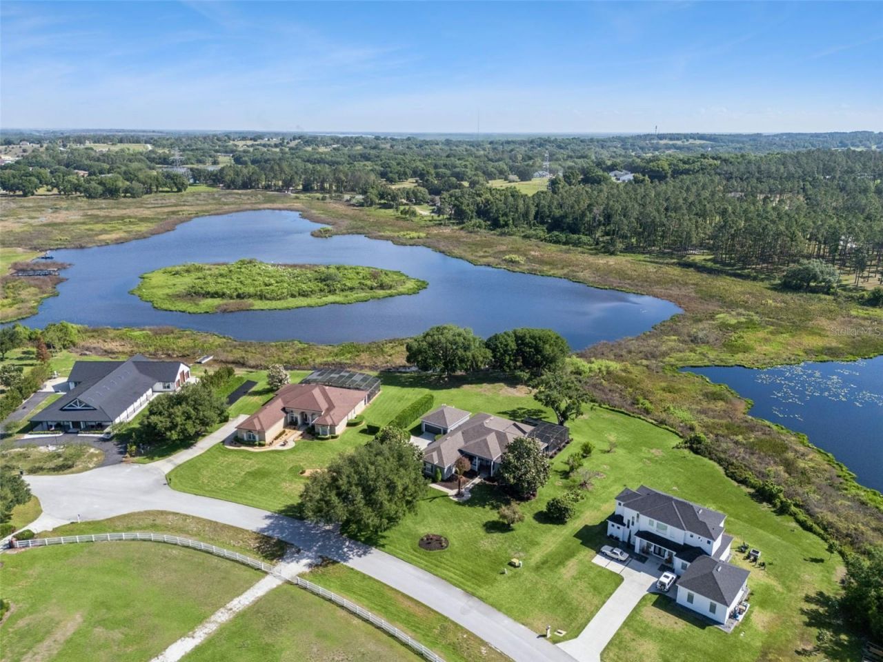 One or more photo(s) has been virtually staged. Welcome to a rare opportunity to own a Meticulously Maintained and MOVE-IN READY ESTATE in the highly sought-after community of Arrowtree Reserve. The PANORAMIC VISTA VIEWS are truly nothing like you have ever seen in Florida. Perfectly positioned you will see WATER from every angle maximizing privacy and serenity.Designed for true Florida living, everything is on ONE LEVEL and the three way split floor plan offers privacy and functionality for everyday entertaining and also Multi-Generational Living. The home offers 2 GARAGES - a 3 car attached garage & a DETACHED 720 square foot heated & cooled space that has a workshop & a built-out office/bonus room. The flexibility & possibilities are endless with this space.Inside the upgrades and updates are nothing you will find at this price point. Custom Woodwork, all new lighting fixtures, granite, LUXURY VINYL PLANK FLOORING throughout (no carpet at all) and built-in fireplace with stacked stone detail. The kitchen offers true SOLID BUILT CABINETRY, Pull Outs to maximize storage, Soft Close Drawers and Under Cabinet Lighting. The new appliances have every modern bell and whistle you can think of including the freezer makes 4 different types of ice, hidden chargers on the counter, INDUCTION Stove with Air Fryer and a 44 DOUBLE FAUCET Undercounter Workstation Sink.Outside you will step into your own PRIVATE RESORT. A custom designed PEBBLETEC Solar Heated Pool with 3 WATERFALL features is framed by an expansive screen w/ covered Tongue and Groove Wood ceilings. The entire exterior is outfitted with GOVEE lighting so you can have permanent ambiance for the exterior of your home. The perfect setting for entertaining, game-day gatherings, or relaxing sunset evenings.Located just 1 mile from Florida's Turnpike & US-27, you have an easy commute to Downtown Orlando, MCO airport, Disney, shopping, dining, & the Clermont Chain of Lakes. Montverde Academy is only 15 minutes away.Arrowtree Reserve is known for its acreage homesites, scenic winding roads, and pride of ownership. The community allows detached garages, workshops, RVs, and recreational vehicles, and ultra-fast fiber optic internet is included in your HOA fee. Special Financing Incentives available on this property from SIRVA Mortgage.